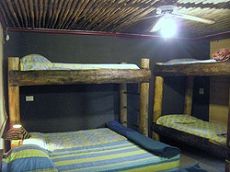 Our Dorm room is in a wooden cabin with a view over our lush gardens. In our Dorm room we have eight single or bunk beds (all bedding and linen provided), it is also self catering and has a communal bathroom. This room is perfect for the over night crash. Located 4km from town on the Hazyview - Sabie road. |