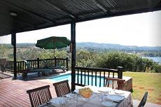 The Lake House is a luxurious 3-bedroom self catering guesthouse that sleeps a maximum of 6 guests, with its own private swimming pool with sweeping views over the Da Gama Dam. It is located within the secure Hazy River Reserve with the well known Hulala Lakeside Lodge. Guests will be surprised when the resident zebra pay them a visit as they relax at the pool. Guests of The Lake House may, with the permission of the Lodge, use the Hulala Lakeside Lodge facilities. The main bedroom is en-suite with a full bathroom with a walk-in shower. It has a king-sized bed and glass doors that lead out onto the deck with stunning lake views. The second bedroom is en-suite with a shower. It has two single beds and also leads onto the deck and enjoys equally beautiful views. The third bedroom is smaller with two single beds The lounge has a couch and a cosy fireplace with a TV and full DSTV facilities. Double wooden glass doors lead onto the deck which has a swimming pool and built in braai/barbeque. The deck is a pleasant entertainment area from which you have sweeping views over the Da Gama Dam. The modern fully equipped kitchen has granite tops with a small breakfast nook. It has all the facilities of home including a fridge/freezer, microwave, stove, dishwasher and washing machine. Situated off the R40 road, midway between Hazyview and White River. |